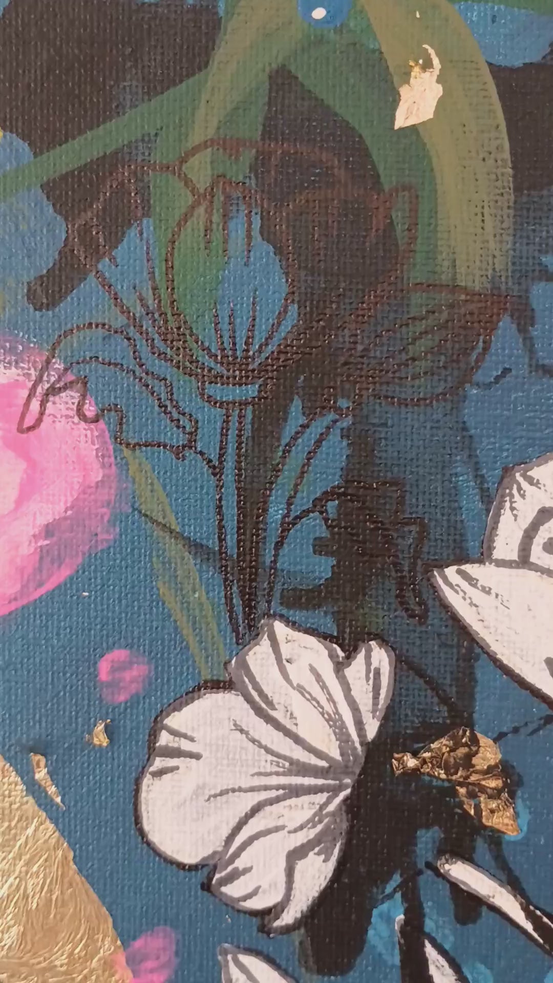 Large flowers painted canvas, Kirstyn Bliss Art original